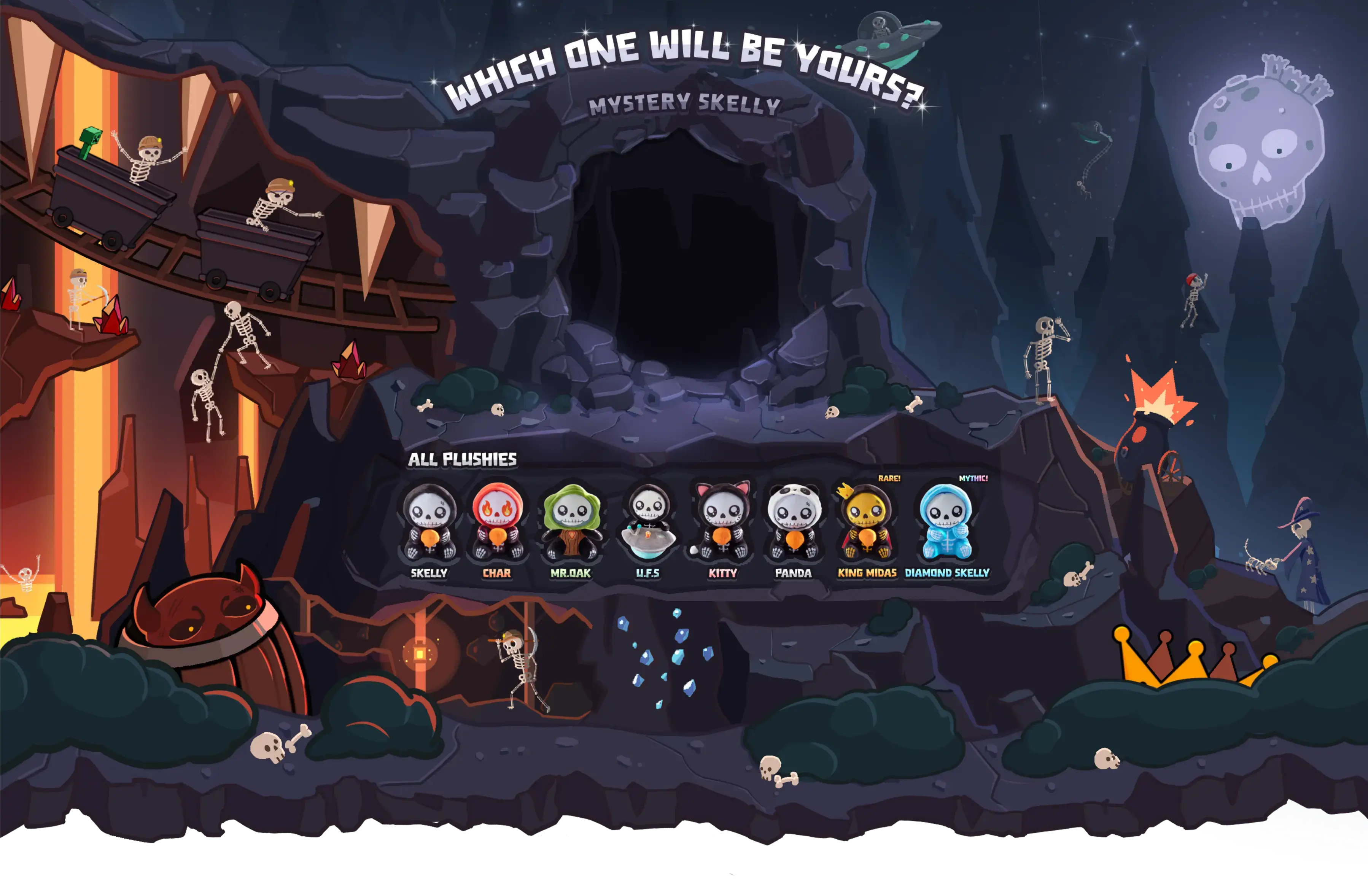 This golden skeleton is the ruler of the skeletonverse. Together with his golden minions, he is seen as the king of spookiness. Hidden deep inside deep caves, he became one of the most evolved skeletons to ever exist.