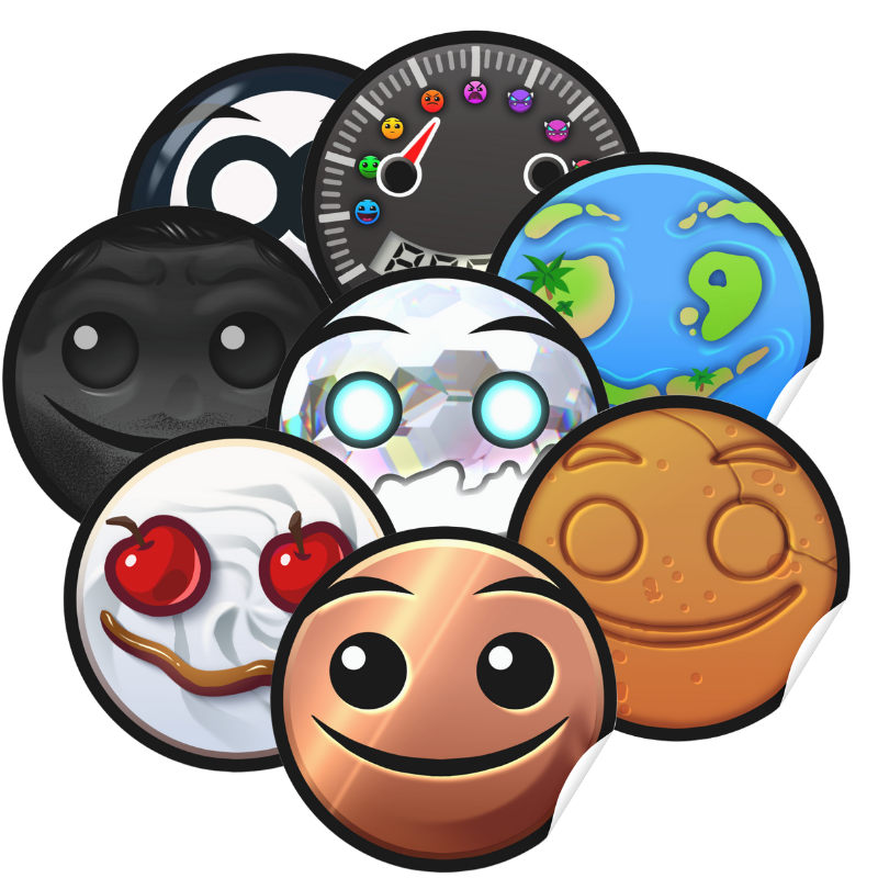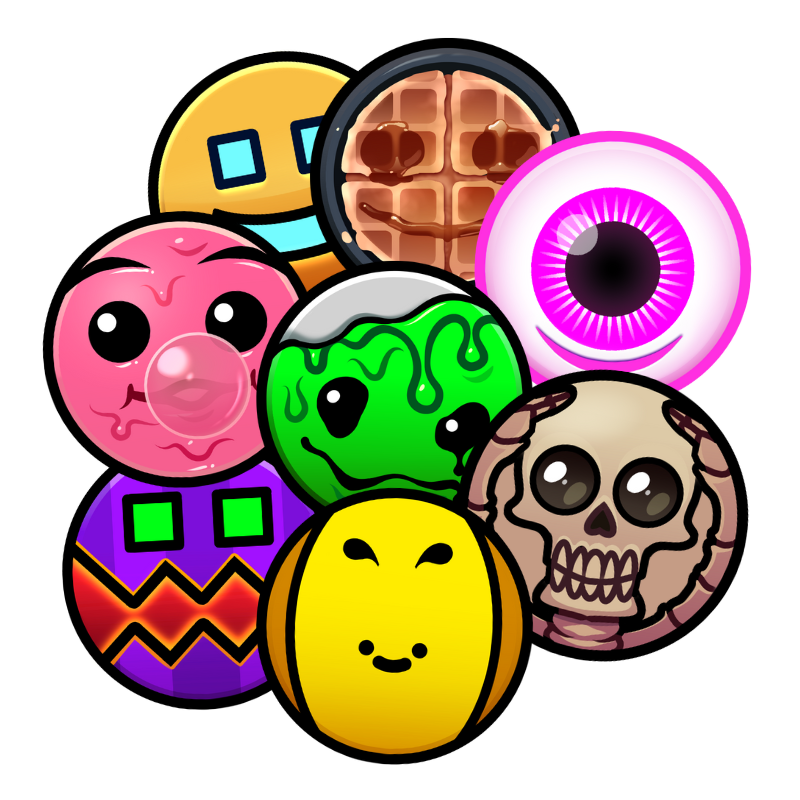 These faces are based on Geometry Dash difficulty faces, emojis that determine the game's difficulty. They are customly designed in the style of the game and have designs that are based on popular levels or daily life items/personas.